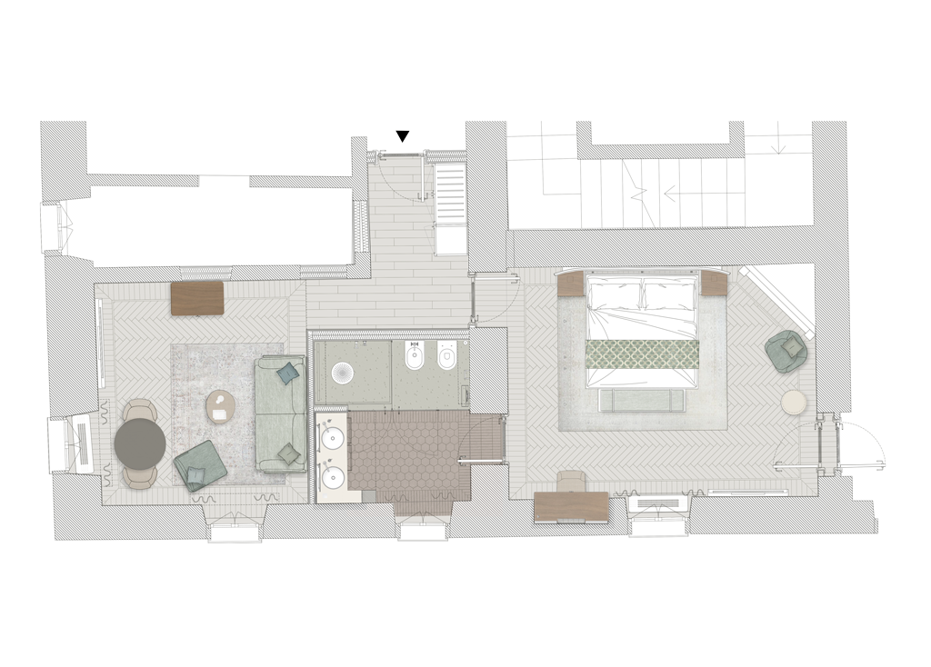 La "Suite de la Comtesse", habitée par la comtesse Angelica Rossi Scotti jusqu'au milieu du siècle dernier, est située au premier étage de la Villa. D’une superficie de 56 m², elle présente des peintures originales, une cheminée en fonte du XVIIe siècle, un salon et une salle de bains avec double lavabo et douche.